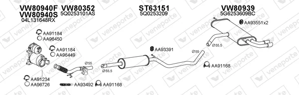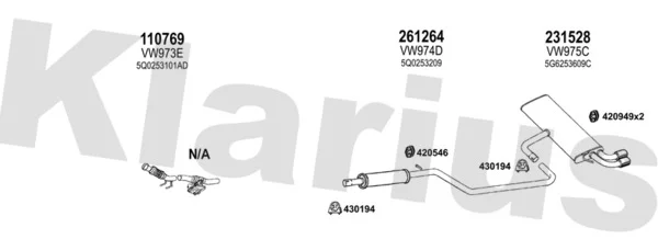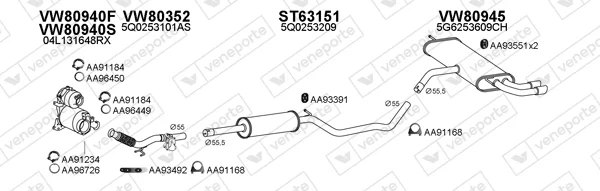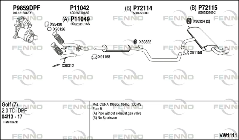 VW GOLF VII (5G1, BQ1, BE1, BE2) 2.0 GTD - Výfukový systém - kompletní od 4/2013 do 8/2020, 1968 ccm, 135 kW, 184 hp, CUNA, DGCA, DJGA, Šikmá zadní část
