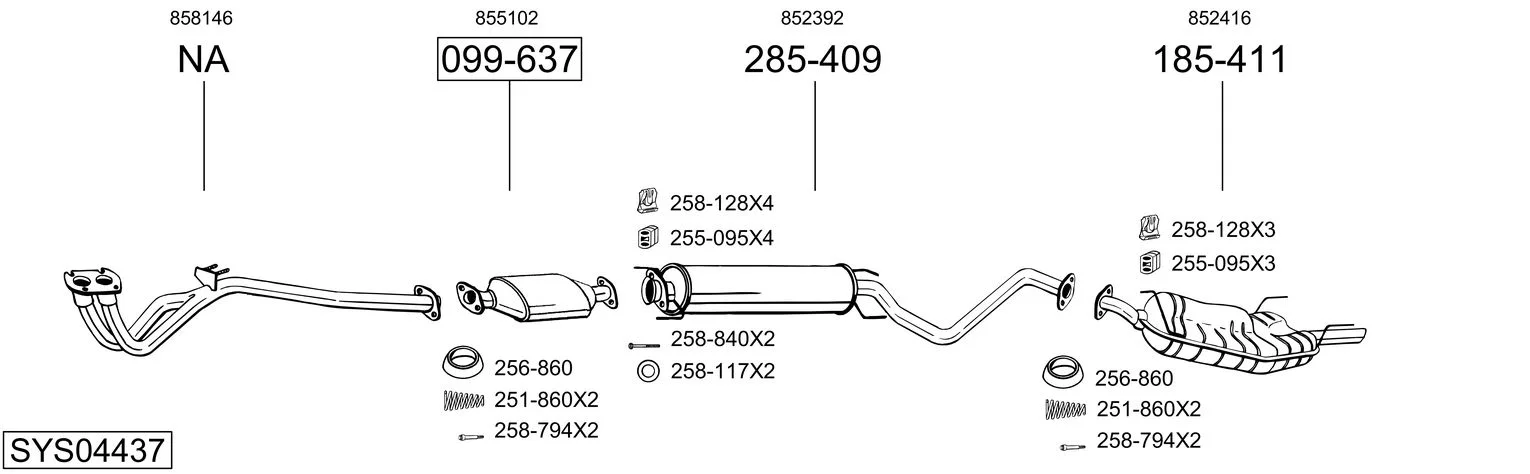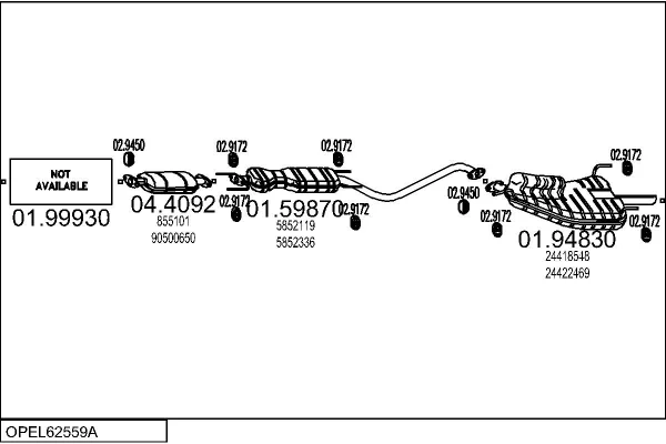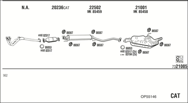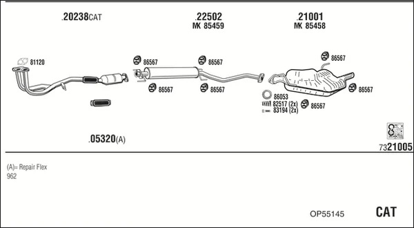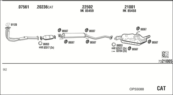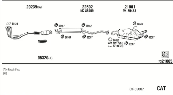 OPEL VECTRA B kombi (J96) 1.8 i 16V (F35) - Výfukový systém - kompletní od 11/1996 do 9/2000, 1796 ccm, 85 kW, 115 hp, X 18 XE1, Z 18 XEL, kombi