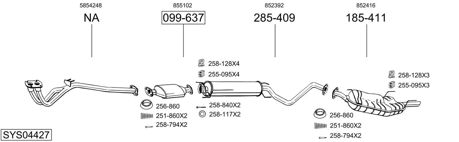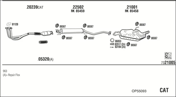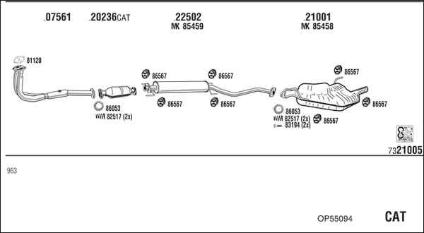 OPEL VECTRA B kombi (J96) 2.0 i 16V (F35) - Výfukový systém - kompletní od 11/1996 do 6/2000, 1998 ccm, 100 kW, 136 hp, C 20 SEL, X 20 XEV, kombi