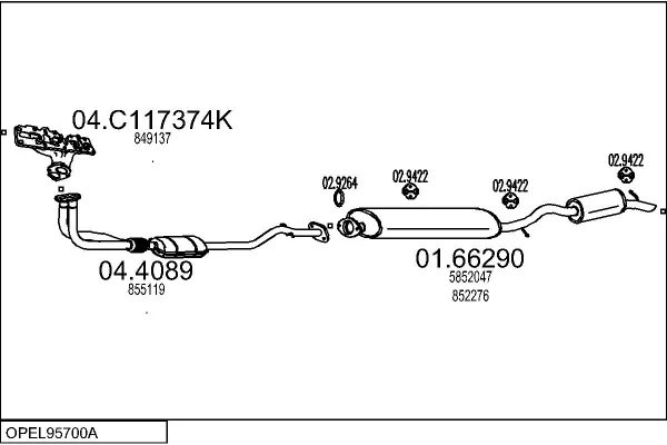OPEL SINTRA (APV) 2.2 i 16V (OUN16, Y94) - Výfukový systém - kompletní od 11/1996 do 4/1999, 2198 ccm, 104 kW, 141 hp, X 22 XE, velkoprostorová limuzína