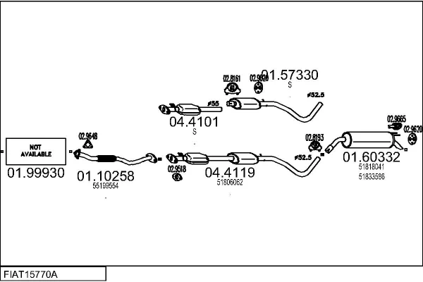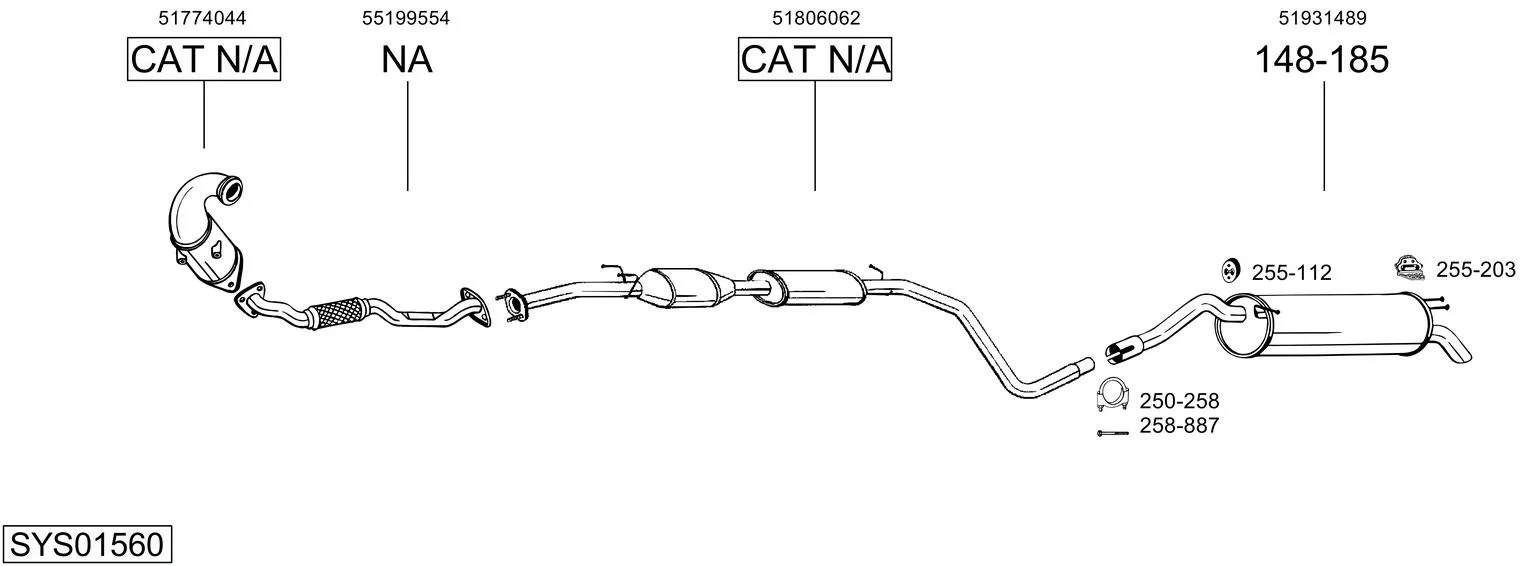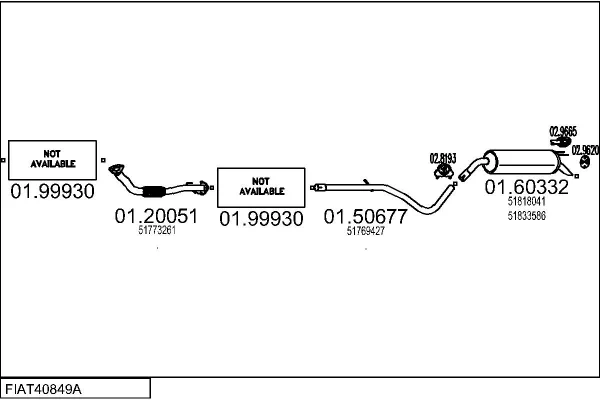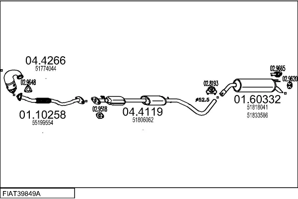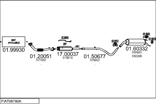 FIAT BRAVO II (198_) 1.9 D Multijet (198AXD1A) - Výfukový systém - kompletní od 11/2006 do 12/2009, 1910 ccm, 85 kW, 116 hp, 192 A1.000, 192 B4.000, Šikmá zadní část