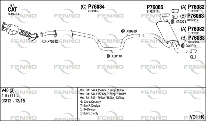 VOLVO V40 Šikmá zadní část (525) T2 GTDi - Výfukový systém - kompletní