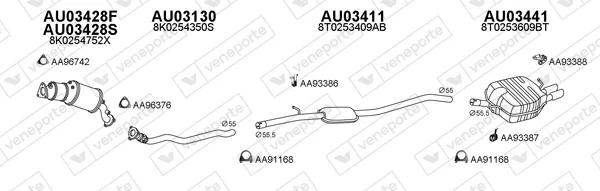 AUDI A5 Sportback (8TA) 2.0 TDI - Výfukový systém - kompletní od 5/2013 do 1/2017, 1968 ccm, 110 kW, 150 hp, CJCD, CMFB, CSUA, Šikmá zadní část