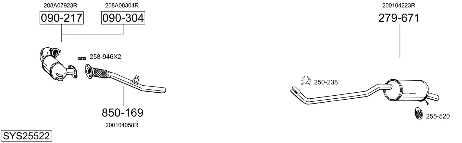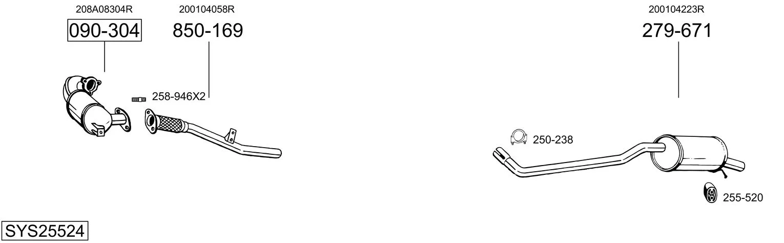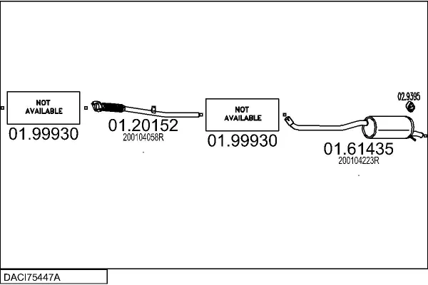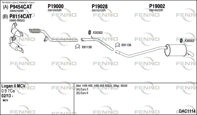 DACIA LOGAN MCV II TCe 90 (K8M1, K8MA, K8AC) - Výfukový systém - kompletní od 2/2013, 898 ccm, 66 kW, 90 hp, H4B 400, H4B 408, H4B 412, kombi