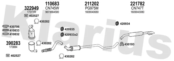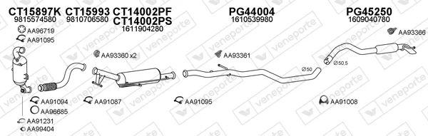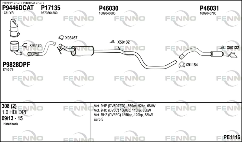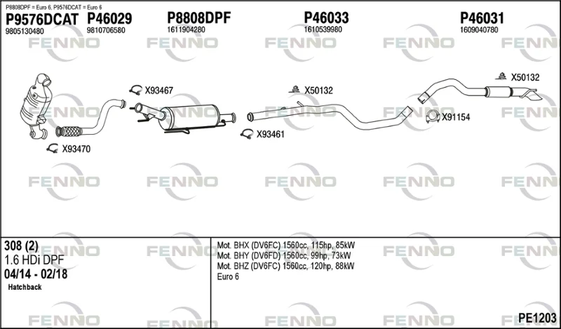 PEUGEOT 308 II (LB_, LP_, LW_, LH_, L3_) 1.6 HDi / BlueHDi 115 - Výfukový systém - kompletní od 9/2013 do 6/2021, 1560 ccm, 85 kW, 115 hp, 9HC (DV6C), BHX (DV6FC), BHZ (DV6FC), Šikmá zadní část