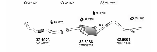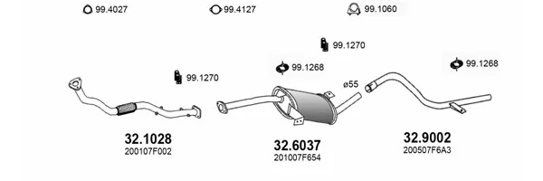 NISSAN TERRANO II (R20) 2.7 TDi 4WD - Výfukový systém - kompletní od 5/1996 do 9/2007, 2664 ccm, 92 kW, 125 hp, TD27TI, uzavřený terénní vůz