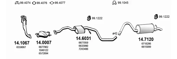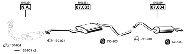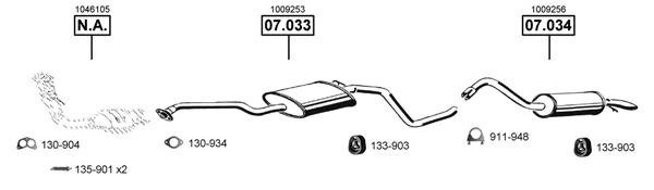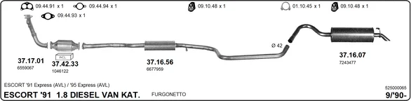 FORD ESCORT V Express (AVF) 1.8 D - Výfukový systém - kompletní od 7/1990 do 12/1994, 1753 ccm, 44 kW, 60 hp, RTA, RTE, RTF, RTH, karoserie/kombi