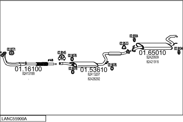 LANCIA PRISMA (831_) 1.6 i.e. (831AB) - Výfukový systém - kompletní od 5/1986 do 12/1989, 1585 ccm, 80 kW, 109 hp, 831 B7.000, limuzína