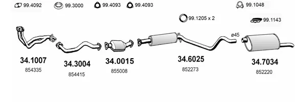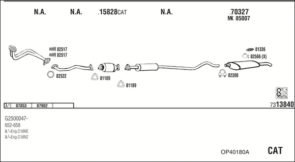 OPEL KADETT E Šikmá zadní část (T85) 1.8 i (C08, C48, D08, D48) - Výfukový systém - kompletní od 6/1985 do 8/1991, 1796 ccm, 66 kW, 90 hp, C 18 NT, C 18 NZ, Šikmá zadní část