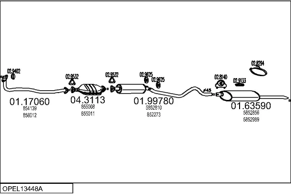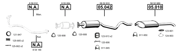 OPEL KADETT E (T85) 1.4 i (C19, D19) - Výfukový systém - kompletní od 1/1990 do 8/1991, 1389 ccm, 44 kW, 60 hp, C 14 NZ, limuzína