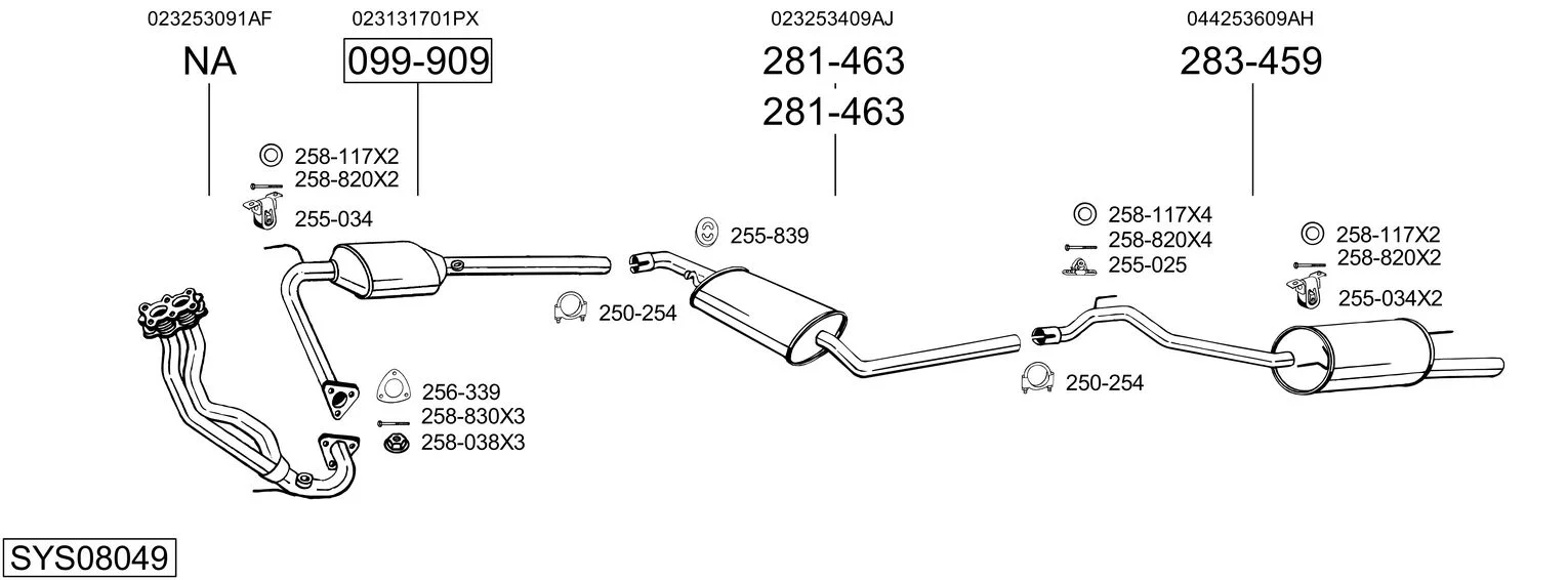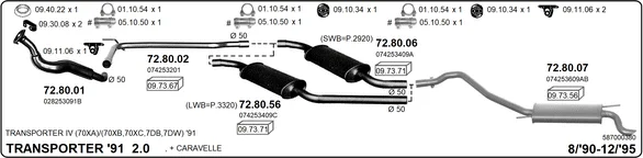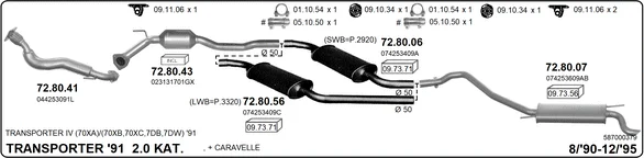 VW TRANSPORTER T4 Krabice (70A, 70H, 7DA, 7DH) 2.0 - Výfukový systém - kompletní od 7/1990 do 4/2003, 1968 ccm, 62 kW, 84 hp, AAC, Krabice