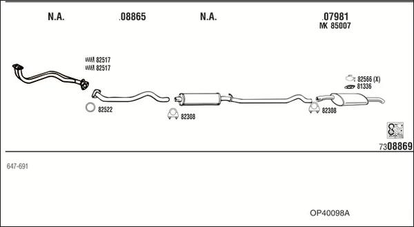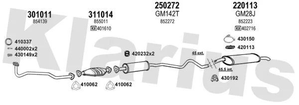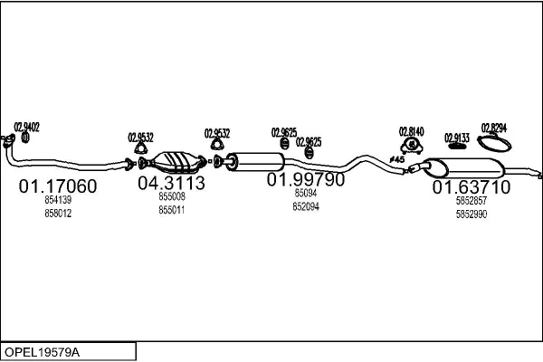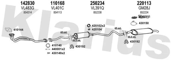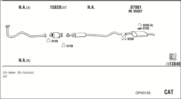 OPEL KADETT E kombi (T85) 1.6 i (C15, C35, D15, D35) - Výfukový systém - kompletní od 9/1986 do 8/1991, 1598 ccm, 55 kW, 75 hp, E 16 NZ, kombi