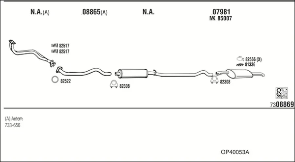 OPEL KADETT E kombi (T85) 1.8 S (C15, C35, D15, D35) - Výfukový systém - kompletní od 9/1987 do 8/1991, 1796 ccm, 62 kW, 84 hp, E 18 NV, S 18 NV, kombi