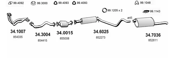 OPEL KADETT E kombi (T85) 2.0 i (C15, C35, D15, D35) - Výfukový systém - kompletní od 9/1987 do 8/1991, 1998 ccm, 85 kW, 115 hp, 20 NE, kombi