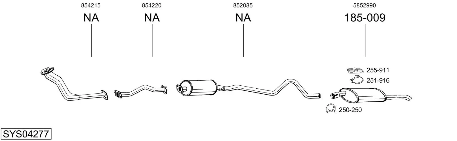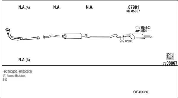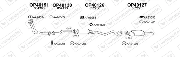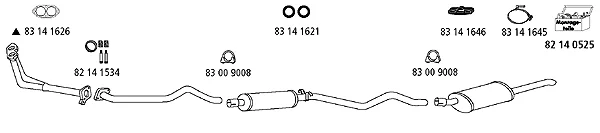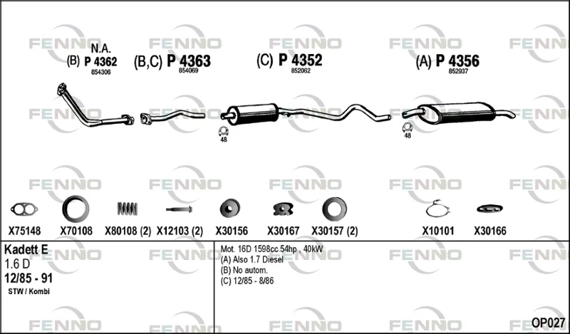 OPEL KADETT E kombi (T85) 1.6 D (C15, C35, D15, D35) - Výfukový systém - kompletní od 9/1984 do 1/1989, 1598 ccm, 40 kW, 54 hp, 16 D, 16 DA, kombi