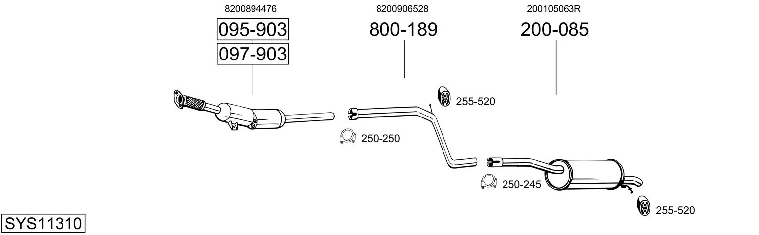 DACIA SANDERO 1.5 dCi - Výfukový systém - kompletní od 5/2010, 1461 ccm, 65 kW, 88 hp, K9K 892, Šikmá zadní část