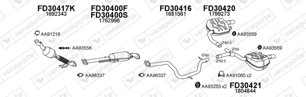 FORD MONDEO IV (BA7) 2.2 TDCi - Výfukový systém - kompletní od 7/2010 do 1/2015, 2179 ccm, 147 kW, 200 hp, KNBA, Šikmá zadní část