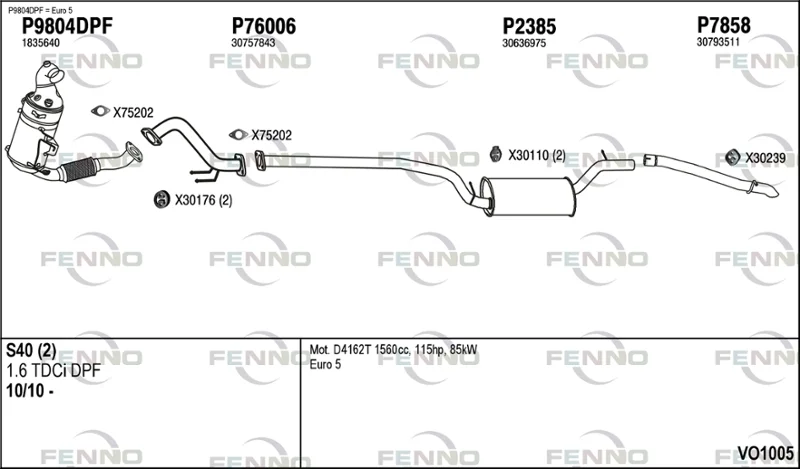 VOLVO S40 II (544) D2 - Výfukový systém - kompletní od 10/2010 do 12/2012, 1560 ccm, 84 kW, 115 hp, D 4162 T, limuzína