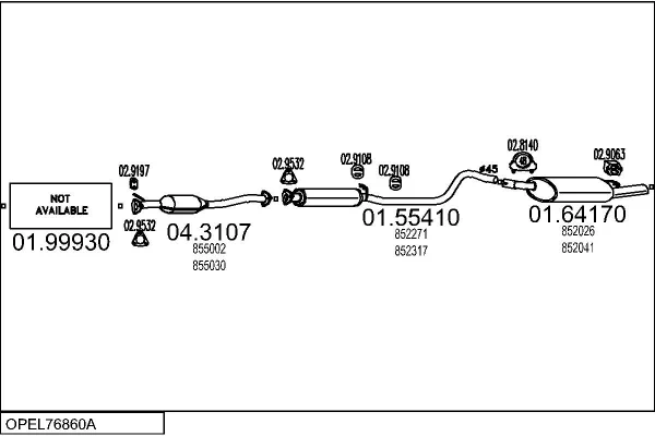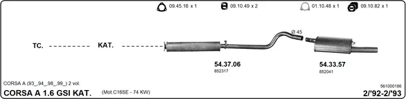 OPEL CORSA A Šikmá zadní část (S83) 1.6 GSI Cat (F08, M08, F68, M68) - Výfukový systém - kompletní od 2/1992 do 3/1993, 1598 ccm, 74 kW, 101 hp, C 16 SE, Šikmá zadní část