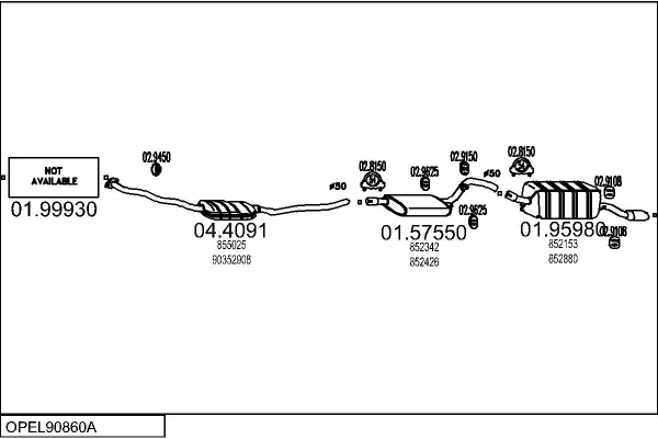 OPEL VECTRA A (J89) 2.0 i Cat 4x4 (F19, M19) - Výfukový systém - kompletní od 1/1989 do 11/1995, 1998 ccm, 85 kW, 116 hp, C 20 NE, limuzína