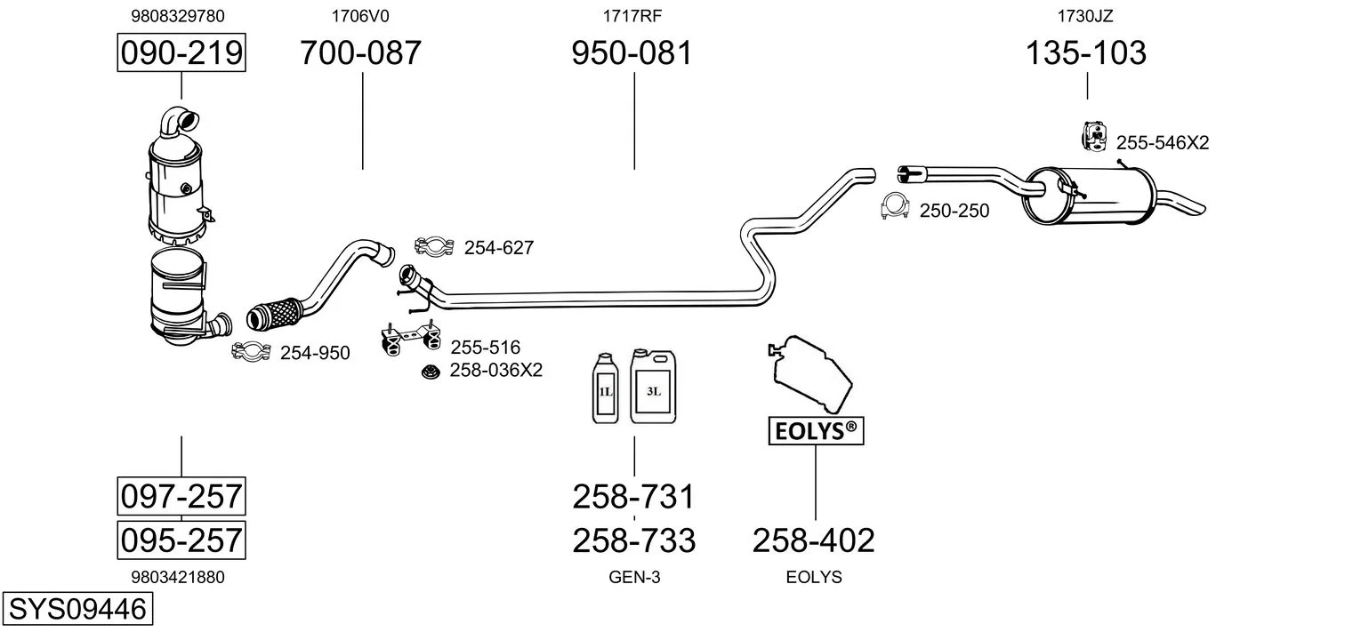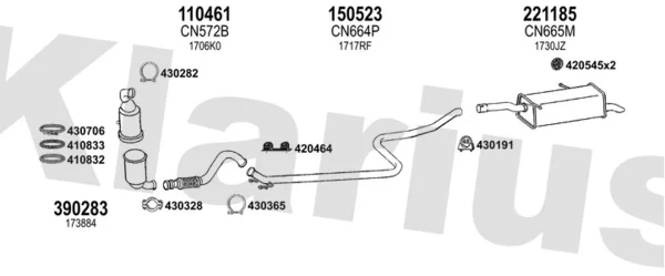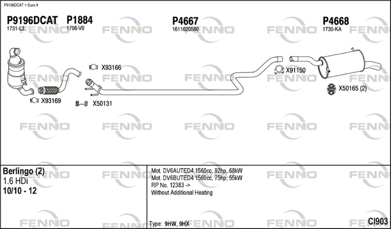 CITROËN BERLINGO MULTISPACE (B9) 1.6 HDi 90 - Výfukový systém - kompletní od 7/2010, 1560 ccm, 68 kW, 92 hp, 9HJ (DV6DTEDM), 9HP (DV6DTED), velkoprostorová limuzína