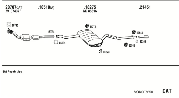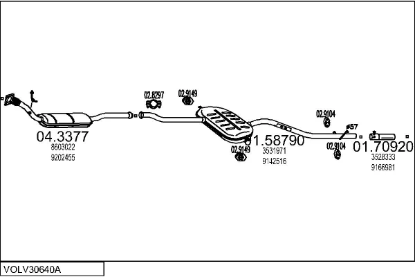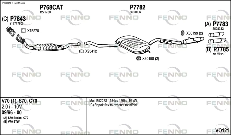 VOLVO S70 (874) 2.0 - Výfukový systém - kompletní od 1/1997 do 11/2000, 1984 ccm, 93 kW, 126 hp, B 5202 FS, B 5202 S, limuzína