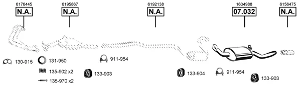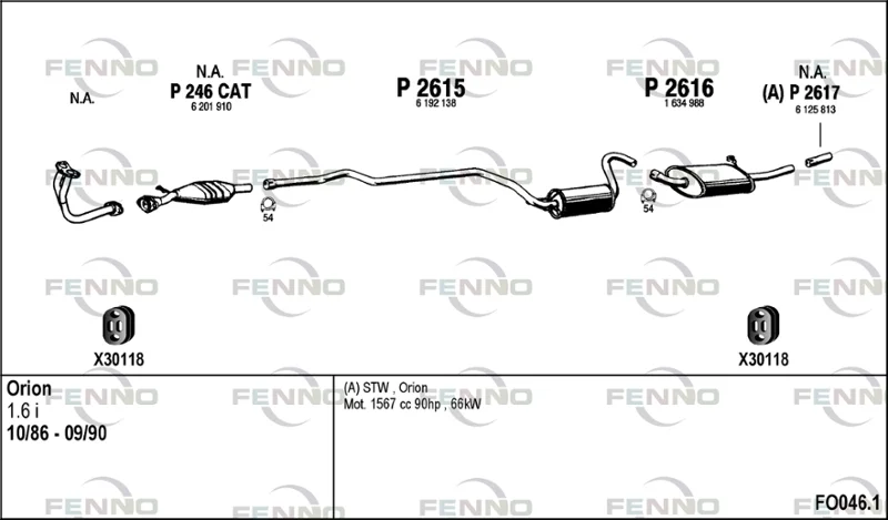 FORD ORION II (AFF) 1.6 i Cat - Výfukový systém - kompletní od 3/1986 do 7/1990, 1597 ccm, 66 kW, 90 hp, L4B, limuzína