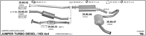 CITROËN JUMPER I autobus (230P) 2.5 TD 4x4 - Výfukový systém - kompletní od 8/1996 do 4/2002, 2446 ccm, 76 kW, 103 hp, T8A (DJ5T), autobus