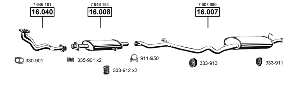 FIAT TIPO (160_) 1.6 (160.AE) - Výfukový systém - kompletní od 1/1988 do 10/1991, 1581 ccm, 61 kW, 83 hp, 160 A2.000, Šikmá zadní část
