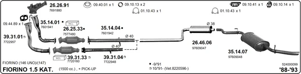 FIAT FIORINO Skříňová/velkoprostorová limuzína (146_) 75 i.e. 1.5 - Výfukový systém - kompletní od 5/1988 do 12/1993, 1498 ccm, 55 kW, 75 hp, 149 C1.000, Skříňová/velkoprostorová limuzína