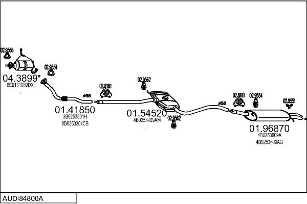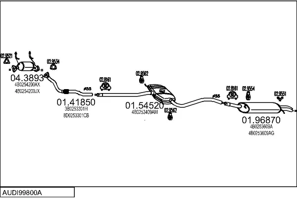AUDI A6 C5 (4B2, 4B4) 1.8 T - Výfukový systém - kompletní od 1/1997 do 1/2005, 1781 ccm, 110 kW, 150 hp, AEB, ANB, APU, ARK, AWT, limuzína
