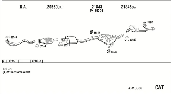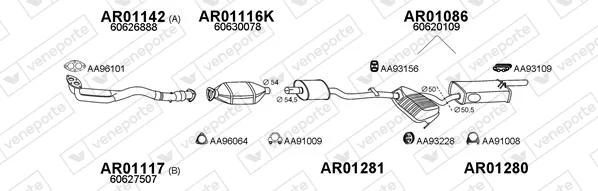 ALFA ROMEO 146 (930_) 1.4 i.e. 16V T.S. (930.B3A) - Výfukový systém - kompletní od 11/1996 do 1/2001, 1370 ccm, 76 kW, 103 hp, AR 33503, AR 38501, Šikmá zadní část