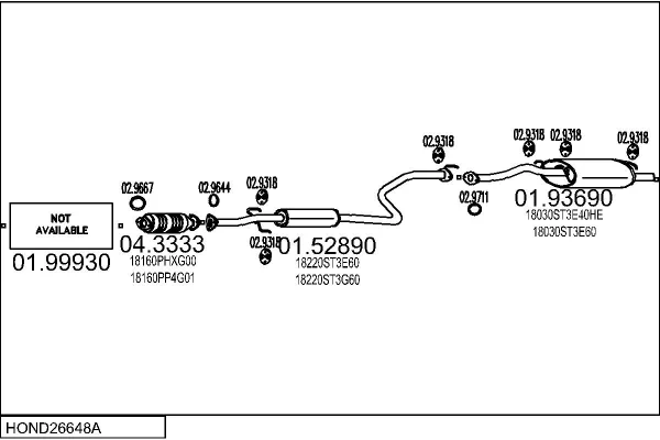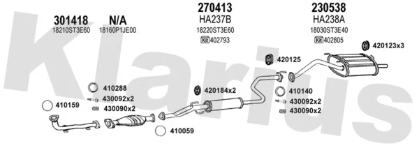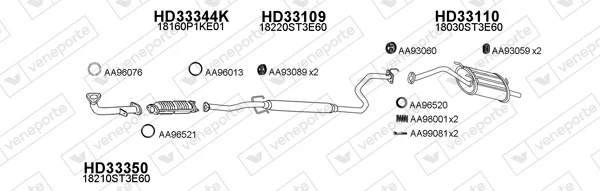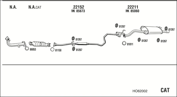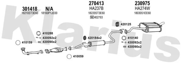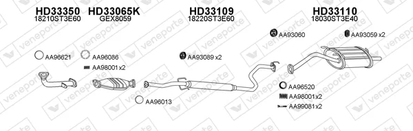 HONDA CIVIC VI Fastback (MA, MB) 1.6 16V (MB4) - Výfukový systém - kompletní od 1/1997 do 2/2001, 1590 ccm, 85 kW, 116 hp, D16B2, D16W3, Šikmá zadní část