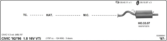 HONDA CIVIC VI Fastback (MA, MB) 1.8 16V (MB6) - Výfukový systém - kompletní od 1/1997 do 2/2001, 1797 ccm, 124 kW, 169 hp, B18C4, Šikmá zadní část