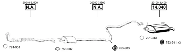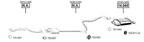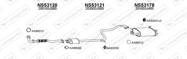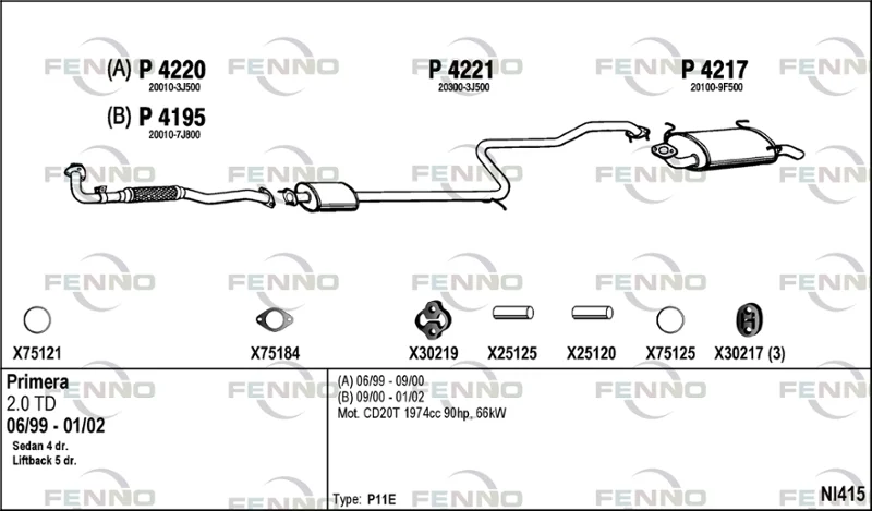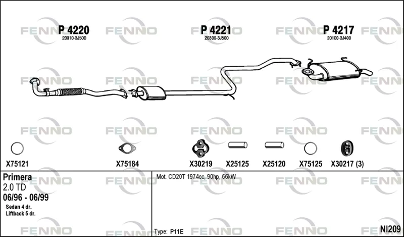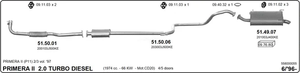 NISSAN PRIMERA (P11) 2.0 TD - Výfukový systém - kompletní od 9/1996 do 12/2001, 1974 ccm, 66 kW, 90 hp, CD20T, limuzína