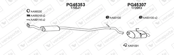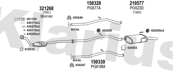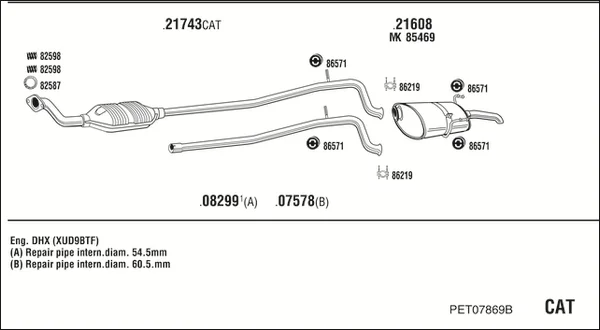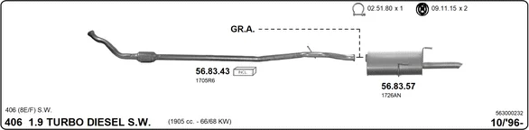 PEUGEOT 406 Break (8E/F) 1.9 TD - Výfukový systém - kompletní od 10/1996 do 10/2004, 1905 ccm, 66 kW, 90 hp, DHX (XUD9TE), kombi