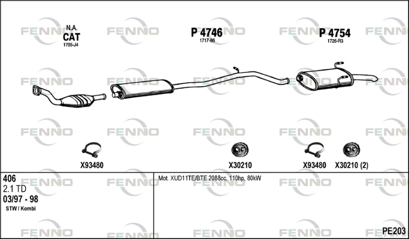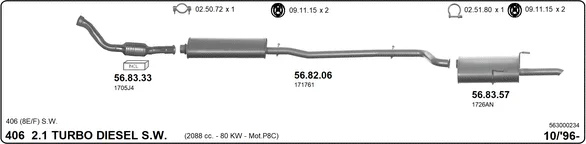 PEUGEOT 406 Break (8E/F) 2.1 TD 12V - Výfukový systém - kompletní od 10/1996 do 10/2004, 2088 ccm, 80 kW, 109 hp, P8C (XUD11BTE), kombi