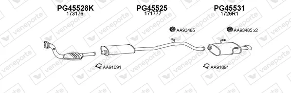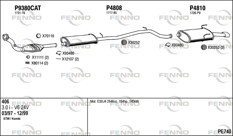 PEUGEOT 406 Break (8E/F) 3.0 24V - Výfukový systém - kompletní od 10/1996 do 10/2004, 2946 ccm, 140 kW, 190 hp, XFZ (ES9J4), kombi