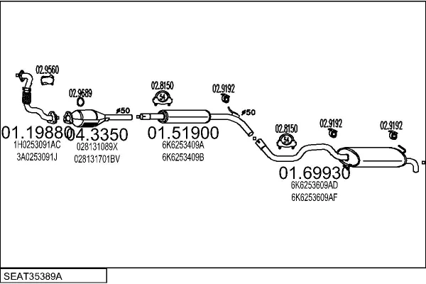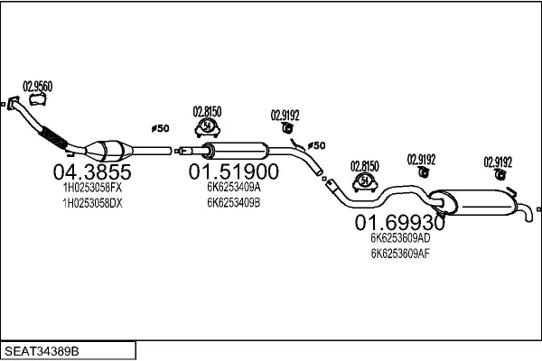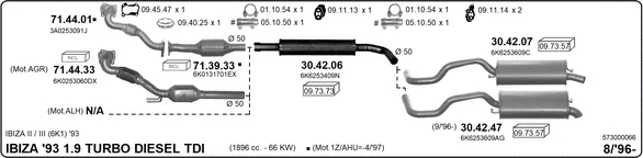 SEAT IBIZA II (6K1) 1.9 TDI - Výfukový systém - kompletní od 8/1996 do 2/2002, 1896 ccm, 66 kW, 90 hp, 1Z, AGR, AHU, ALH, Šikmá zadní část