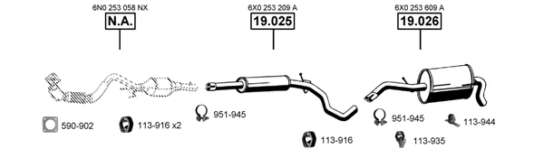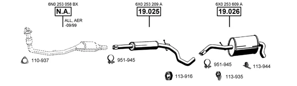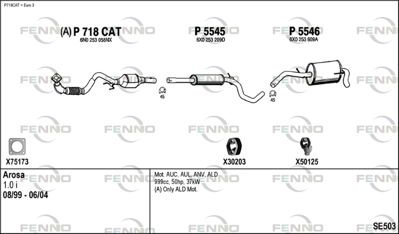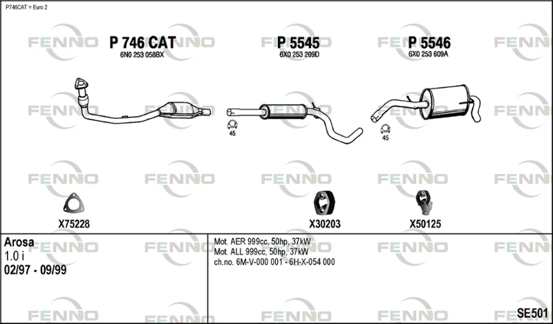 SEAT AROSA (6H1) 1.0 - Výfukový systém - kompletní od 5/1997 do 6/2004, 999 ccm, 37 kW, 50 hp, AER, ALD, ALL, ANV, AUC, Šikmá zadní část