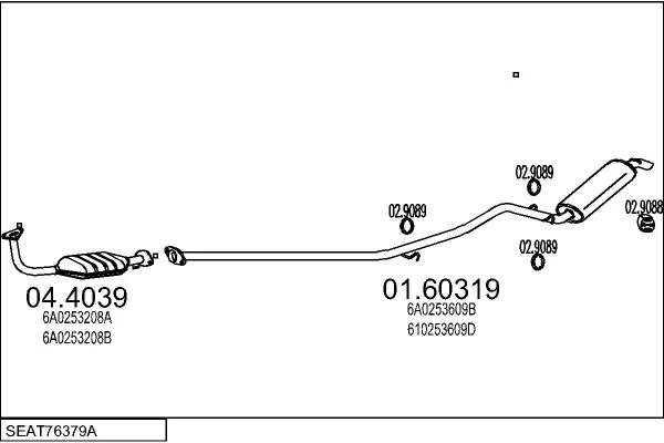 SEAT MARBELLA (28A) 0.9 Cat - Výfukový systém - kompletní od 11/1996 do 10/1998, 899 ccm, 30 kW, 41 hp, 08 NCB, Šikmá zadní část