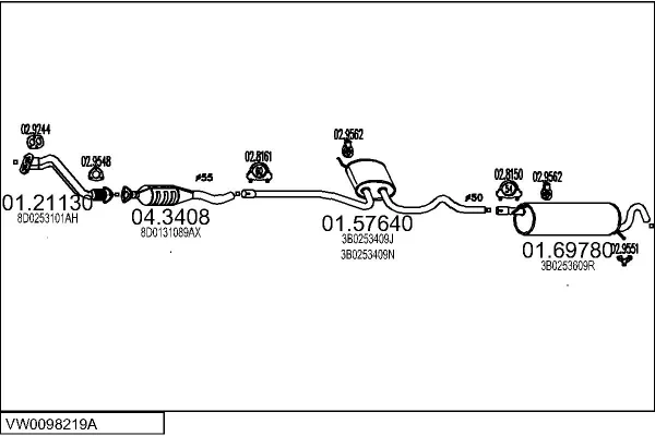 VW PASSAT B5 Variant (3B5) 1.8 - Výfukový systém - kompletní od 6/1997 do 11/2000, 1781 ccm, 92 kW, 125 hp, ADR, APT, ARG, kombi