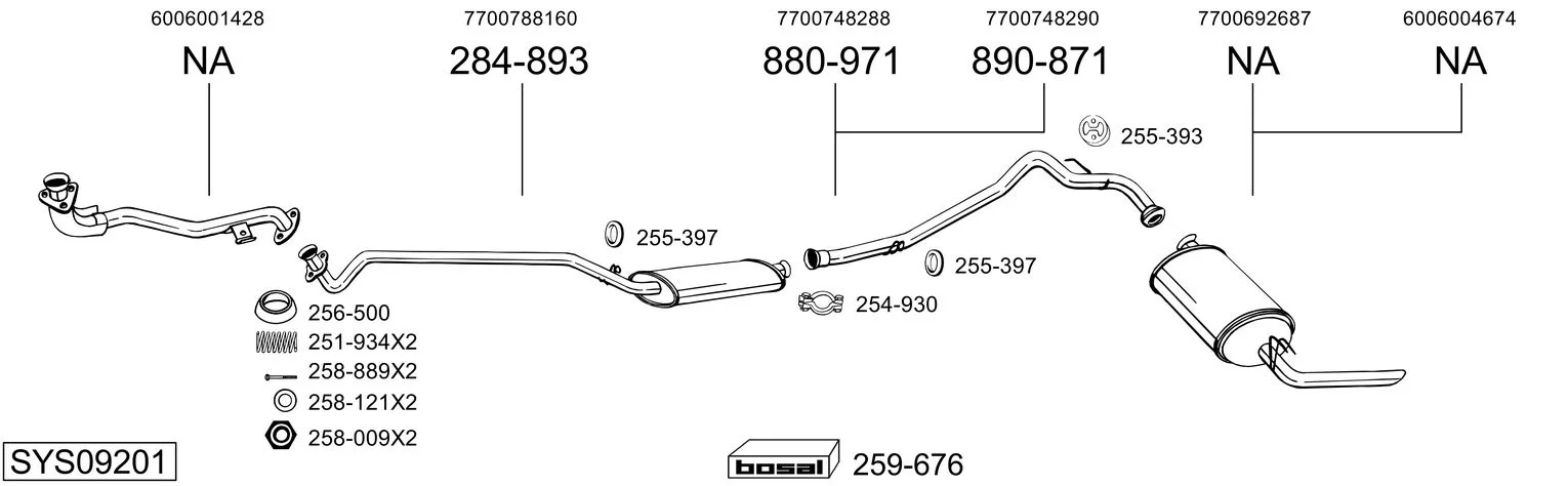 RENAULT TRAFIC Krabice (T_, P_, V_) 2.5 D - Výfukový systém - kompletní od 5/1989 do 3/2001, 2499 ccm, 55 kW, 75 hp, 8140.67.2500, 8140.67.2550, 8140.67.2580, S8U 750, S8U 752, S8U 758, Krabice