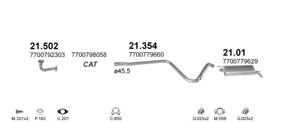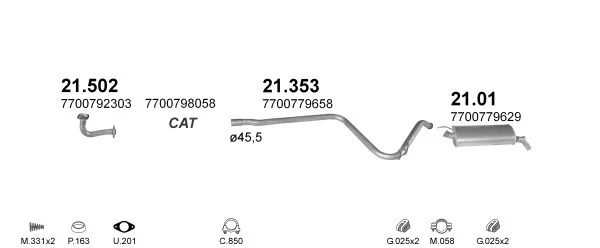 RENAULT SUPER 5 (B/C40_) 1.4 Cat (B/C/407) - Výfukový systém - kompletní od 10/1985 do 12/1996, 1390 ccm, 43 kW, 58 hp, C3J 700, C3J 702, C3J 760, Šikmá zadní část
