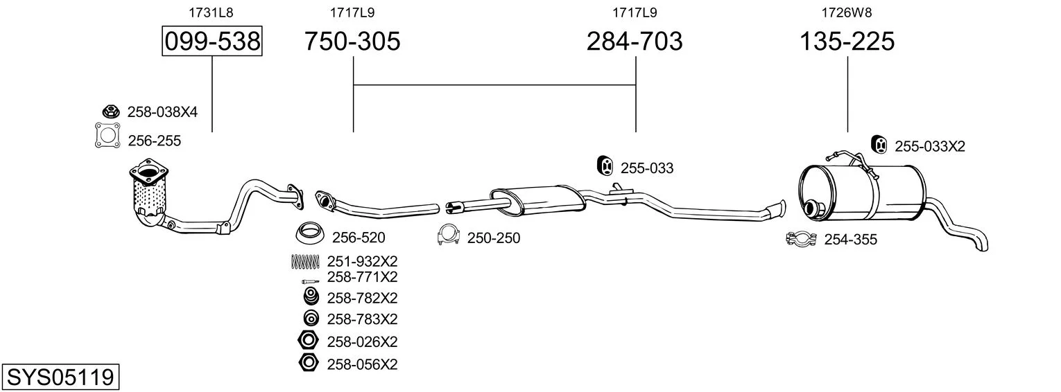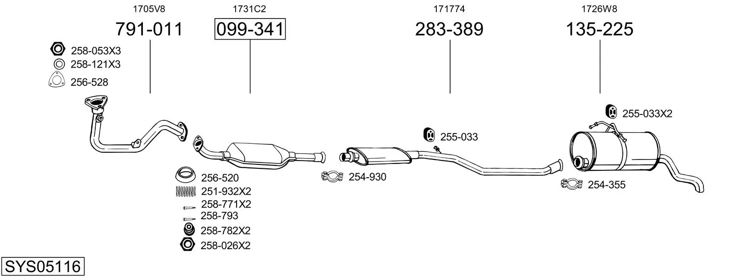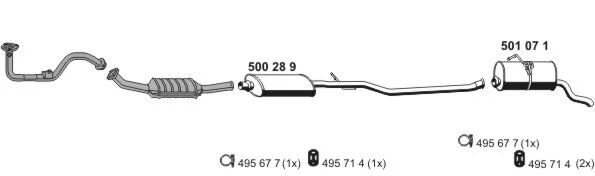 PEUGEOT PARTNER Skříňová/velkoprostorová limuzína (5_, G_) 1.4 - Výfukový systém - kompletní od 6/1996 do 12/2015, 1360 ccm, 55 kW, 75 hp, KFW (TU3A), KFX (TU3JP), TU32, Skříňová/velkoprostorová limuzína