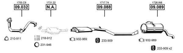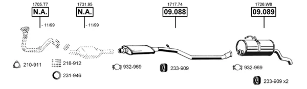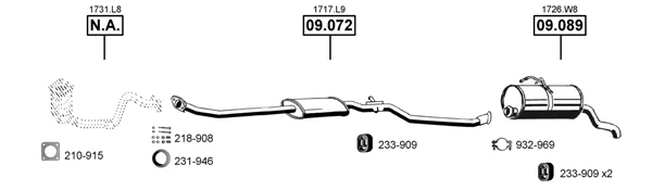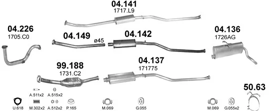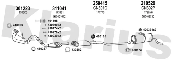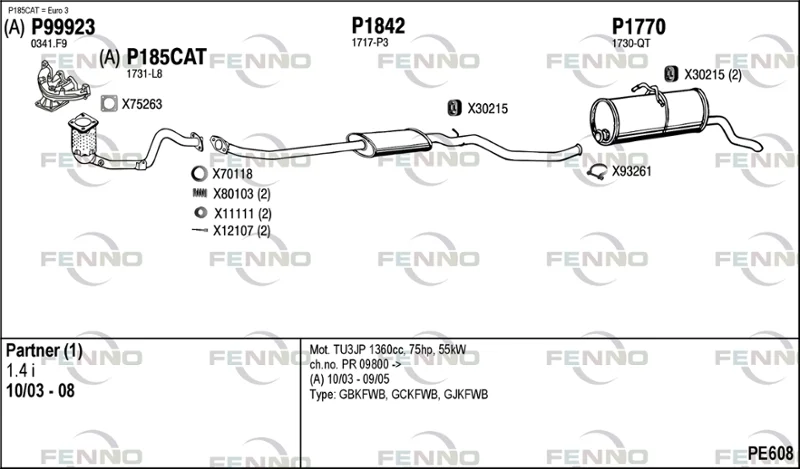 PEUGEOT PARTNER Skříňová/velkoprostorová limuzína (5_, G_) 1.4 - Výfukový systém - kompletní od 6/1996 do 12/2015, 1360 ccm, 55 kW, 75 hp, KFW (TU3A), KFX (TU3JP), TU32, Skříňová/velkoprostorová limuzína