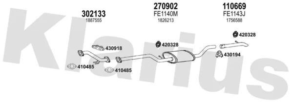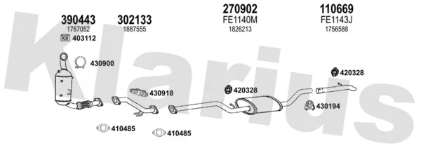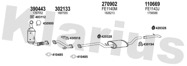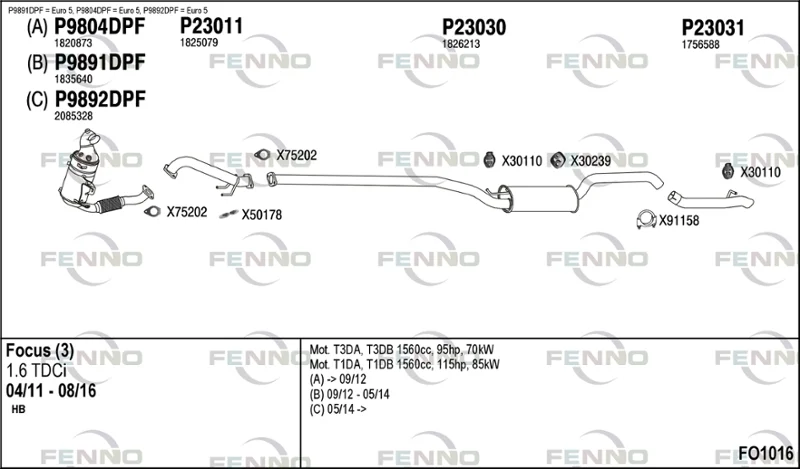 FORD FOCUS III 1.6 TDCi - Výfukový systém - kompletní od 7/2010 do 12/2017, 1560 ccm, 85 kW, 115 hp, T1DA, T1DB, Šikmá zadní část