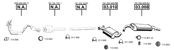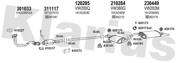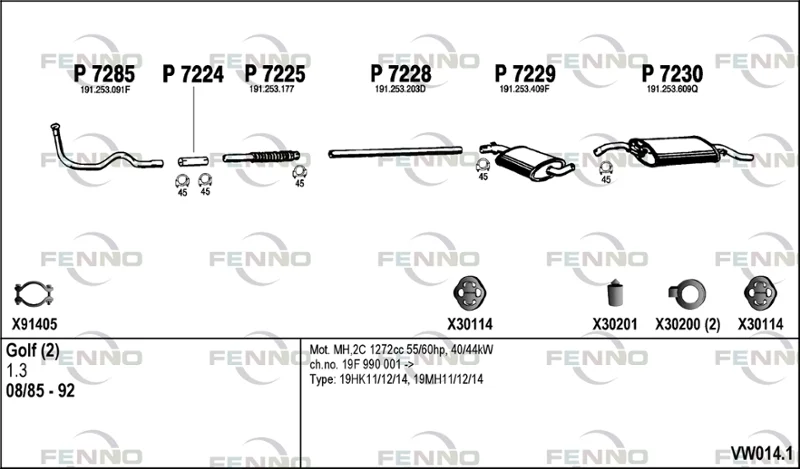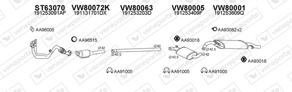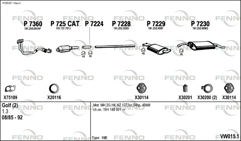 VW GOLF II (19E, 1G1) 1.3 Cat - Výfukový systém - kompletní od 6/1986 do 12/1992, 1272 ccm, 40 kW, 55 hp, 2G, MH, NZ, Šikmá zadní část