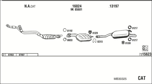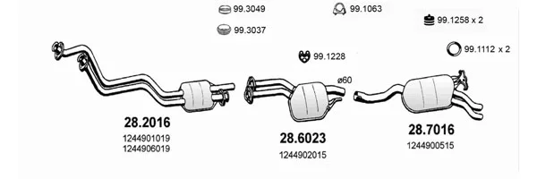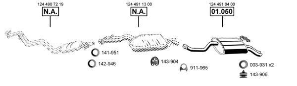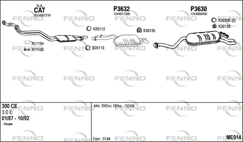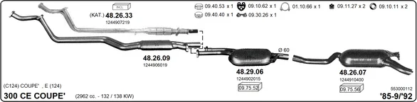 MERCEDES-BENZ 124 kupé (C124) 300 CE (124.050) - Výfukový systém - kompletní od 3/1987 do 5/1993, 2960 ccm, 132 kW, 180 hp, M 103.983, kupé