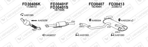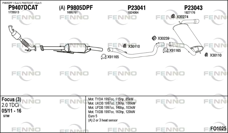 FORD FOCUS III Turnier 2.0 TDCi - Výfukový systém - kompletní od 7/2010 do 6/2014, 1997 ccm, 120 kW, 163 hp, TXDB, kombi